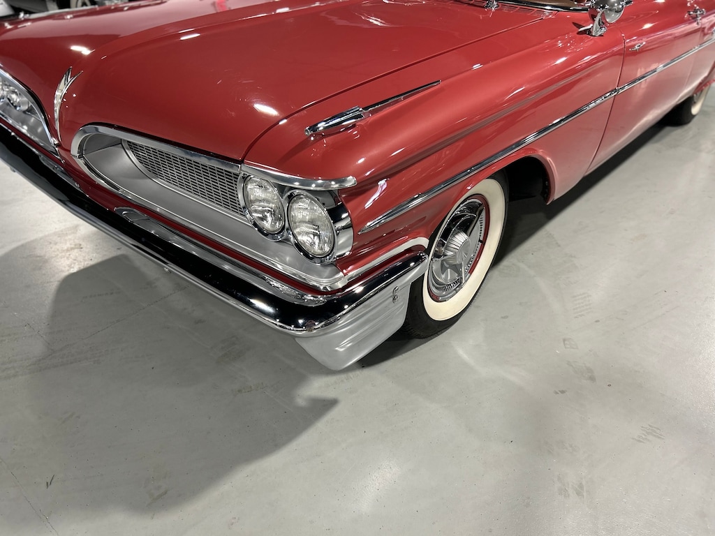 This was a high dollar restoration of a rust Free 1959 Bonneville with no expense spared, topside, underside, inside, outside, anywhere you look this thing is hard to fault. And awesome power, just an absolute pleasure to drive. 389 with Tri-Power set up, three deuces mated to a GM Hydro Matic transmission, very strong runner. Turnkey condition with all the right equipment being operational, including power steering, power brakes, power antenna, factory radio and more. Riding on a set of Coker classic white wall tires, steel wheels, and correct factory OEM wheel covers.